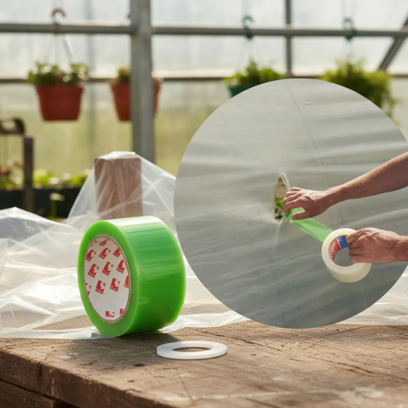 Cinta de polietilieno transparente tratada para resistir los rayos UV con sistema adhesivo acrílico de larga vida. Recomendado para empalmes y reparaciones de invernaderos o túneles, fabricados con film y láminas de polietilieno. Adecuado para la reparación de grietas en plásticos rígidos o vidrios. Posee un adhesivo de larga vida con alta resistencia a la humedad.