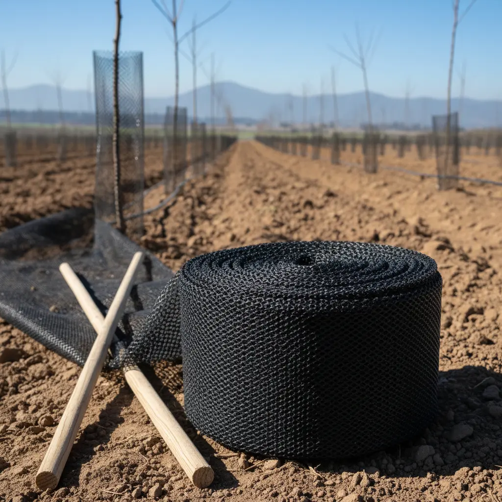 Protector de árbol fabricado de polietileno alta densidad con aditivo UV que permite una duración óptima en terreno. Al tener perforaciones permite una excelente ventilación lo que evita la presencia de enfermedades. Producto en formato rollo, lo que permite ajustar su altura según necesidad.